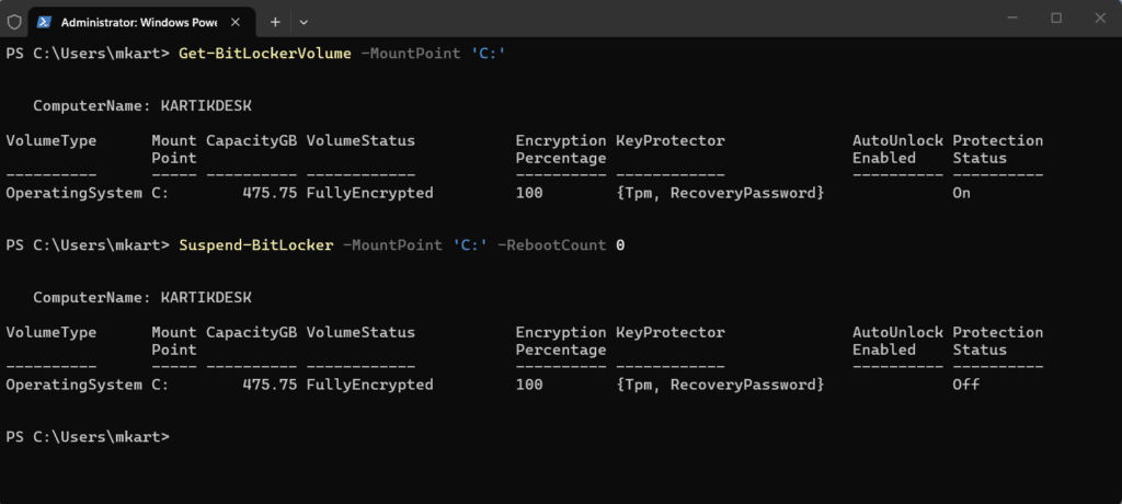 Suspend and Resume BitLocker Protection via PowerShell